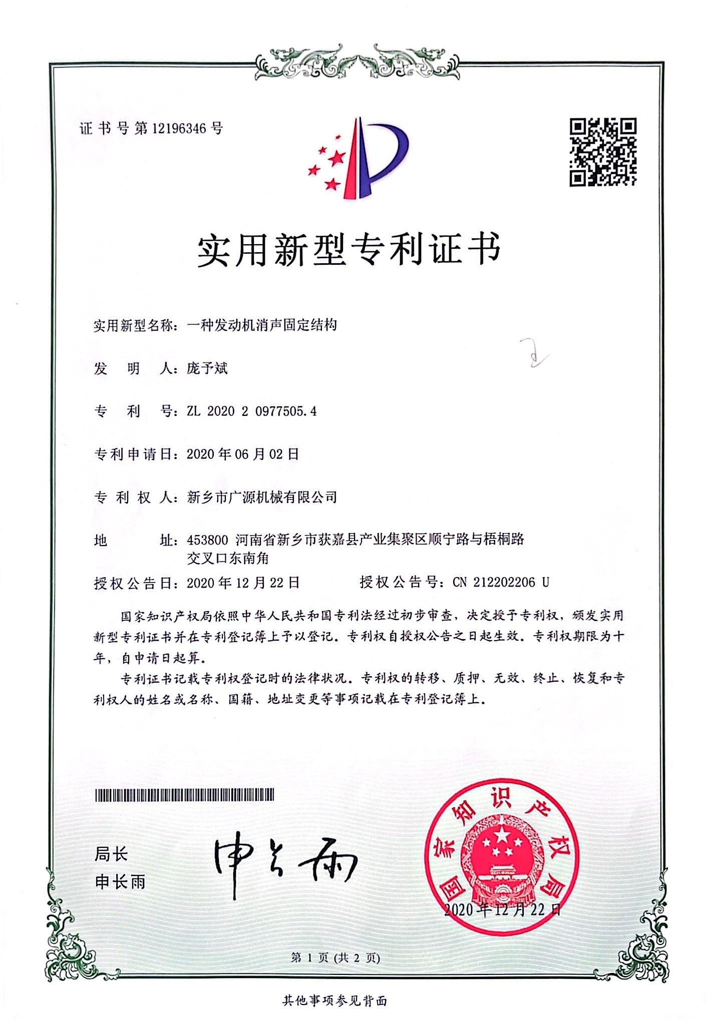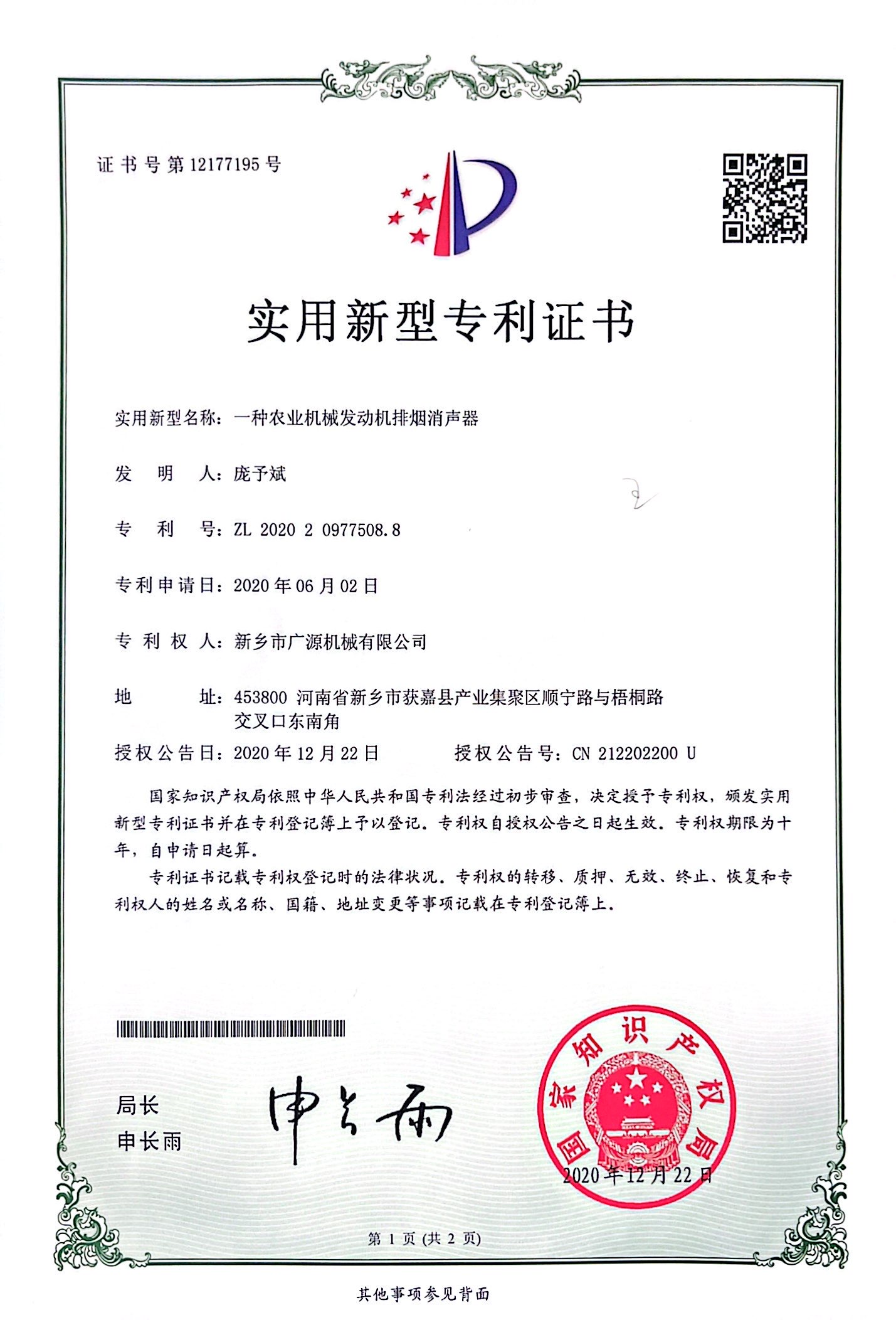 實用新型證書